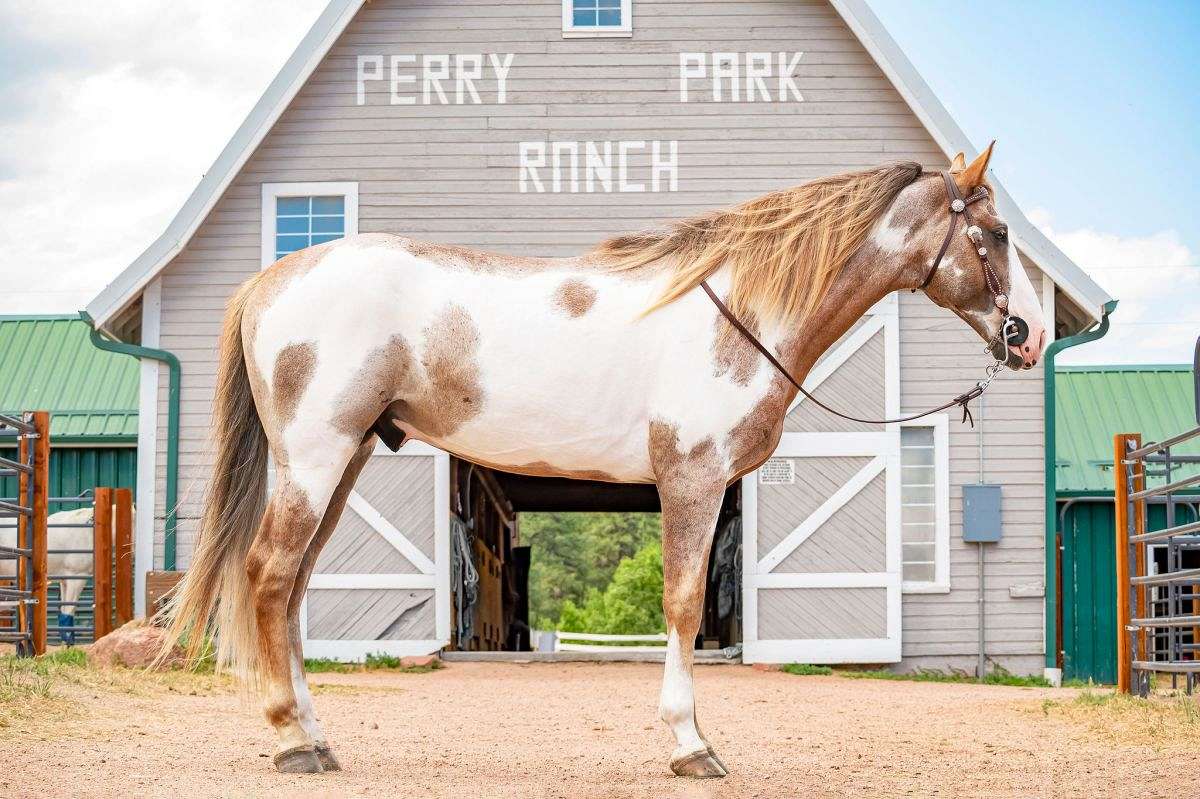 Perry Park Ranch is a beautiful, historic horse ranch located in Larkspur, Colorado. We offer horse boarding and training, horseback riding lessons, and community. PPR is also home to SCF Moonlit Merry Boy, a stunning 2019 sorrel frame overo double registered Tennessee Walking Horse and Spotted Saddle Horse stud.