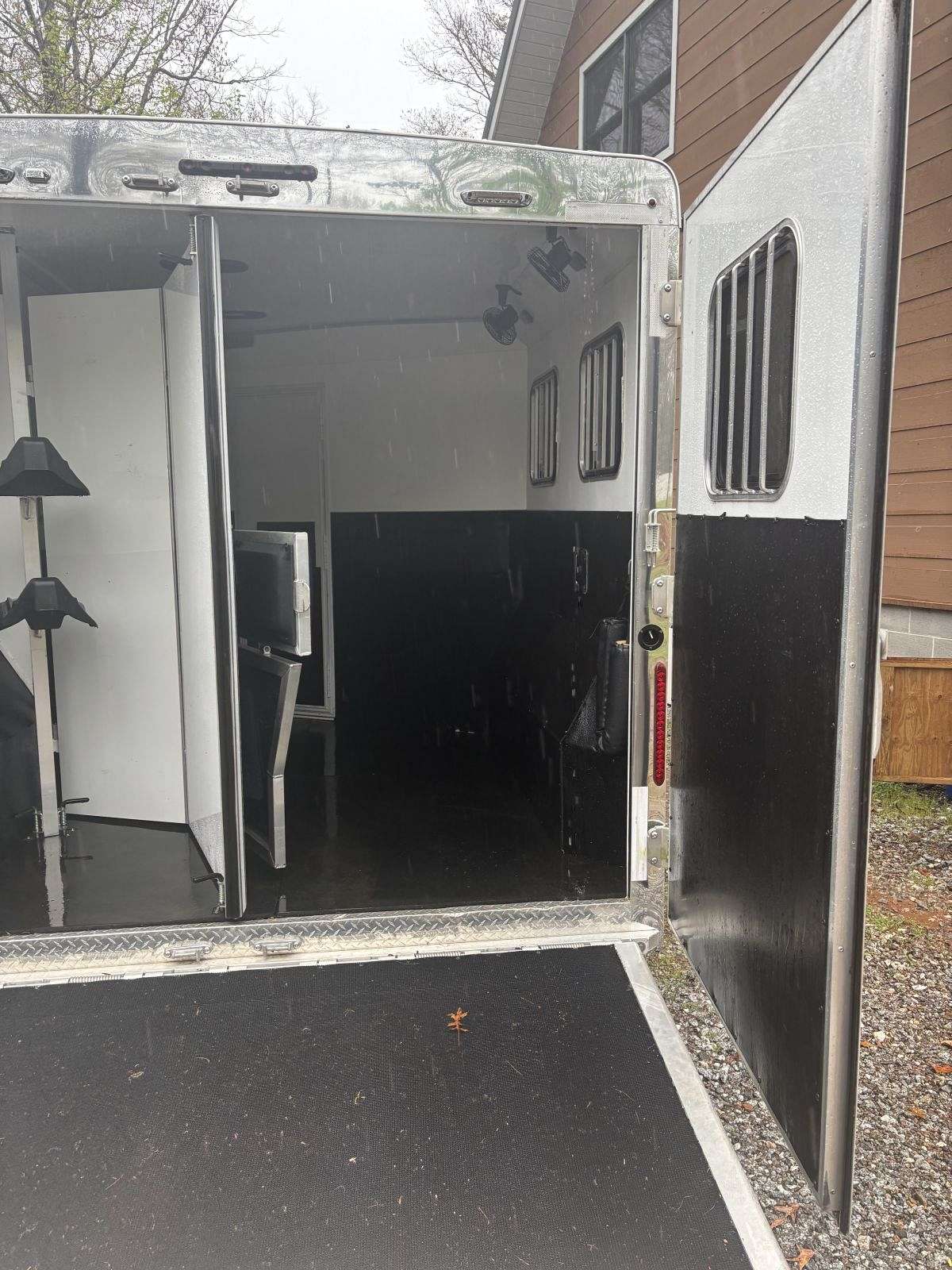 Nothing but good memories come with this trailer. Bought brand new and has never been used by anyone else. Used for horse showing with our daughter. Cleaned top to bottom after each show. It is a two horse slant load with tack room. Has many extras …. Vented AC and furnace, gas or electric water heater, gas or electric refrigerator, dual batteries, 9 ft short wall, fans for horses, horse area lighting, loading lights, etc. Never any leaks or problems.